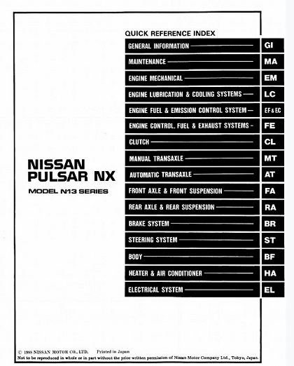 Download Complete Service & Repair Manual for 1989 Nissan Pulsar Nx N13 Series Car.