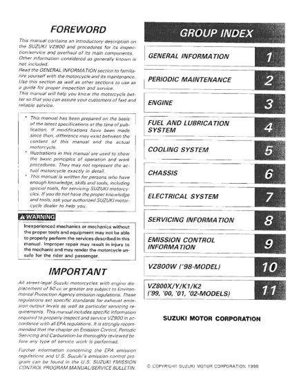 Download Complete Service & Repair Manual for 1997-2002 Suzuki VZ800 Maraude Motorcycle.