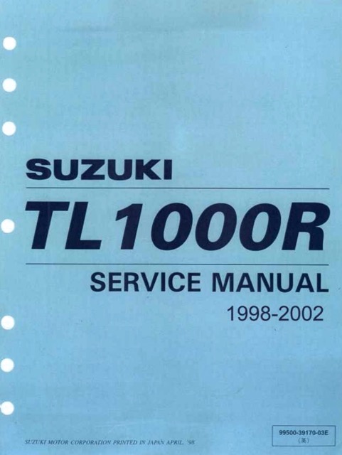 This manual provides detailed service information, step-by-step repair instruction and maintenance specifications.Includes pictures and easy to follow directions on what tools are needed and how the repair is performed. You can save anywhere from hundreds if not thousands of dollars in repair bills by choosing this 1998-2002 Suzuki TL1000R Motorcycle.