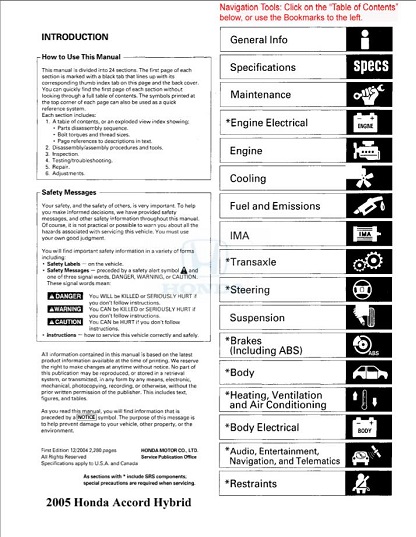 2005 Honda Accord Hybrid Service Repair Manual PDF. This Service Manual has easy-to-read text sections with top quality diagrams and instructions.All diagnostic and repair procedures are covered. Using these manual is an inexpensive way to keep your vehicle working properly. All pages are printable, just run off what you need and take it with you into the garage or workshop.