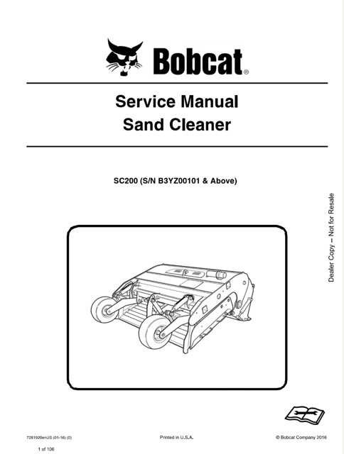 Download Bobcat SC200 Sand Cleaner Service Manual, can easily help you with any repairs that you may need to do. Manual contains step-by-step procedures, detailed illustrations, diagrams, and explanations that will guide you through your servicing and repairing of your Bobcat.