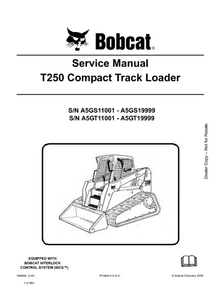 Bobcat T250 Compact Track Loader Service Repair Manual