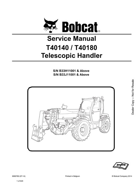 Download Bobcat T40140, T40180 Telescopic Handler Service Manual, can easily help you with any repairs that you may need to do. Manual contains step-by-step procedures, detailed illustrations, diagrams, and explanations that will guide you through your servicing and repairing of your Bobcat Telescopic Handler.