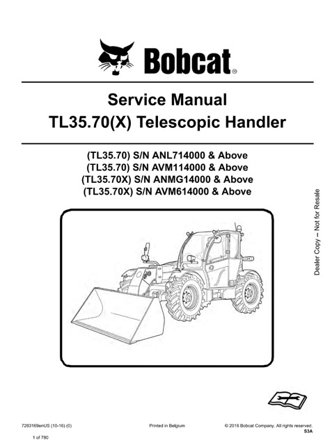 Bobcat TL35.70, TL35.70X Telescopic Handler Service Manual