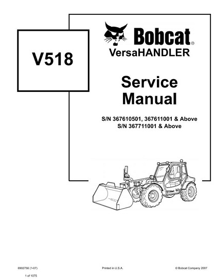 Download Bobcat V518 VersaHandler Service Manual, can easily help you with any repairs that you may need to do. Manual contains step-by-step procedures, detailed illustrations, diagrams, and explanations that will guide you through your servicing and repairing of your Bobcat vehicle.
