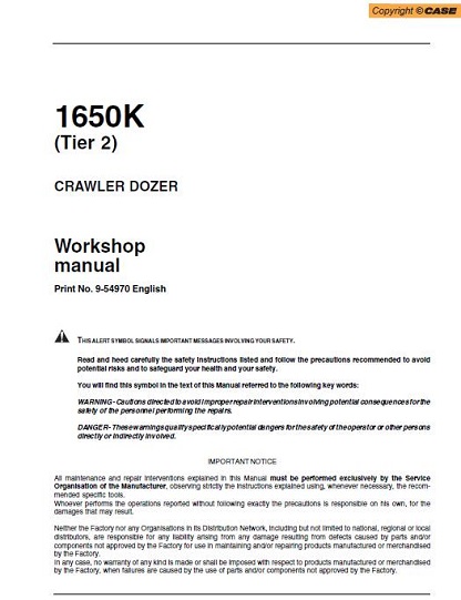This Service Manual offers all the service and repair information about CASE 1650K Tier 2 Crawler Dozer Bulldozer. The information on this manual covered everything you need to know when you want to repair or service CASE 1650K Tier 2 Wheel Loader.