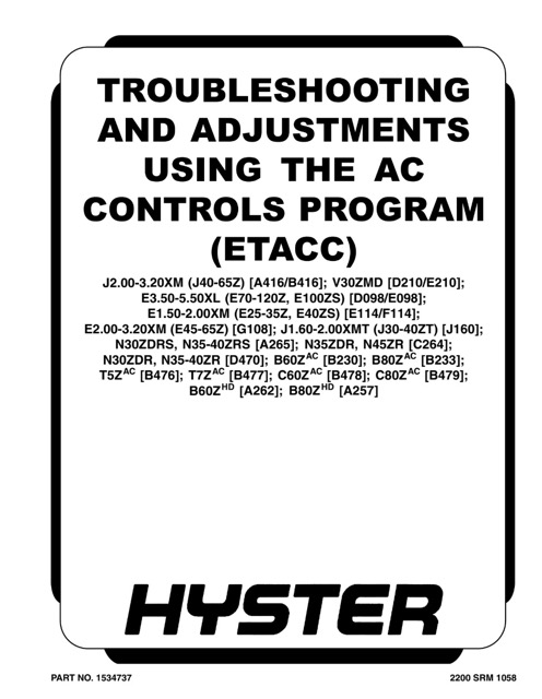 Download Complete Service Repair Manual for Hyster A416 (J40Z, J50Z, J60Z, J65Z) Forklift.