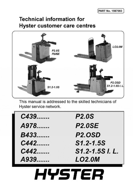 Download Complete Service Repair Manual for Hyster A978 (P2.0SE) Forklift.