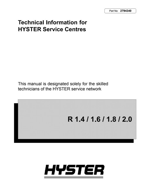 Download Complete Service Repair Manual for Hyster B435 (R1.4, R1.6, R1.8, R2.0) Forklift.