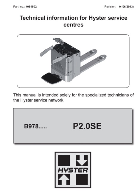 Download Complete Service Repair Manual for Hyster B978 (P2.0SE) Forklift.