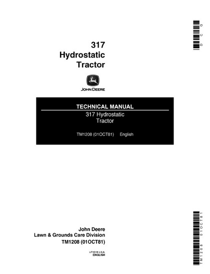 Download Complete Technical & Repair Manual for John Deere 317 Hydrostatic Tractor.