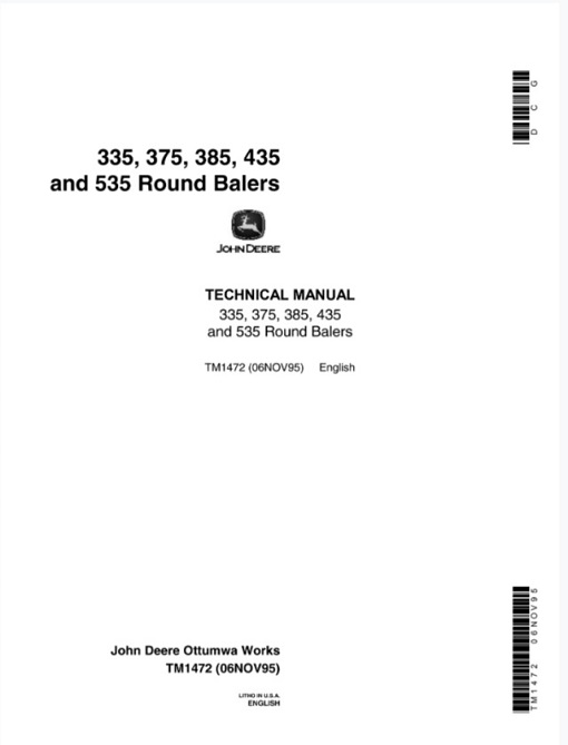 John Deere 335, 375, 385, 435, 535 Round Balers Technical Manual tm1472
