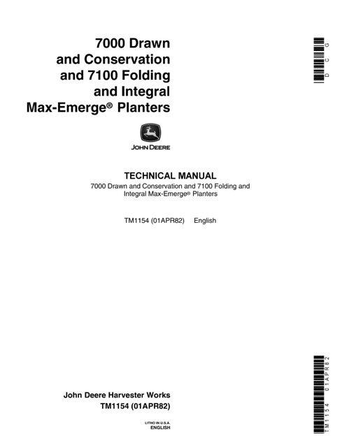 Download PDF John Deere 7000 Drawn and Conservation, 7100 Folding and Integral Max-Emerge Planters Technical Manual TM1154 (01APR82)