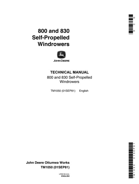 John Deere 800, 830 Self-Propelled Windrowers PDF.This manual is for the John Deere loader mechanic.provides necessary servicing and adjustment procedures for the John Deere loader and its component parts and systems.This is the same type of service manual your local dealer will use when doing a repair.