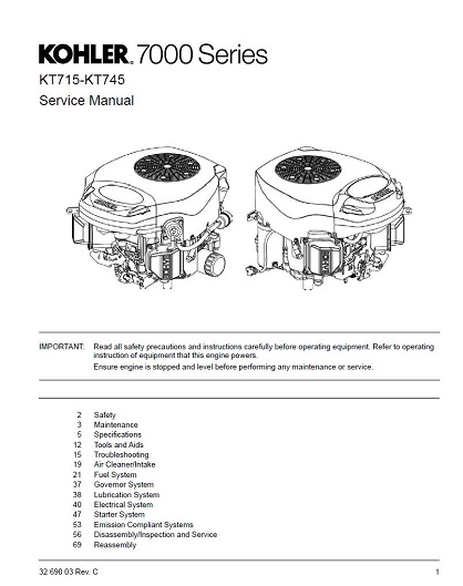 Download Kohler 7000 Series KT715-KT745 Engine Service Manual PDF, This is the same type of service manual your local dealer will be used when doing a repair. With this service manual on hand can easily assist you in any repairs that you may need for your Kohler 7000 Series Machine.Manual contains step-by-step instruction, diagrams, illustration, disassembly,reassembly,and specifications to repair and troubleshoot.And explanations that will guide you through your servicing and repairing of your Engine vehicle.