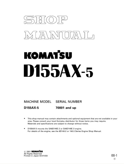 Download Complete Shop Manual for Komatsu D155AX-5 Bulldozer.