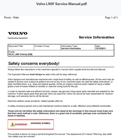 This is Volvo L90f Wheel Loader Service Repair Manual. This manual contains full service and repair instruction used by mechanics around the world.